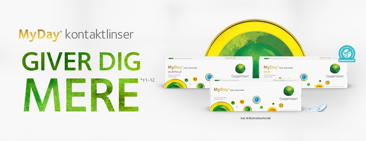 - Den avancerede materialesammensætning i MyDay® kombineret med et optimalt kontaktlinsedesign giver en højtydende endagskontaktlinse1, der er designet til at give et uovertruffent syn*2,3,4 og suveræn komfort.†5,6,7